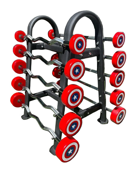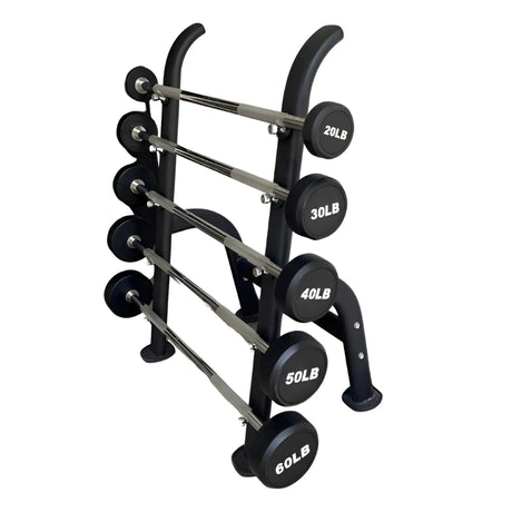 Set de 10 Barras de Peso Integrado Curvas y Rectas (20–60 lbs) con Rack