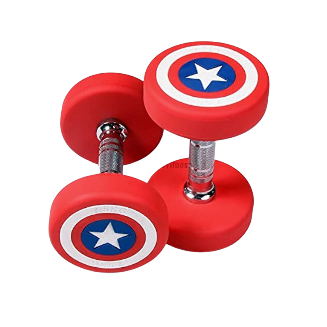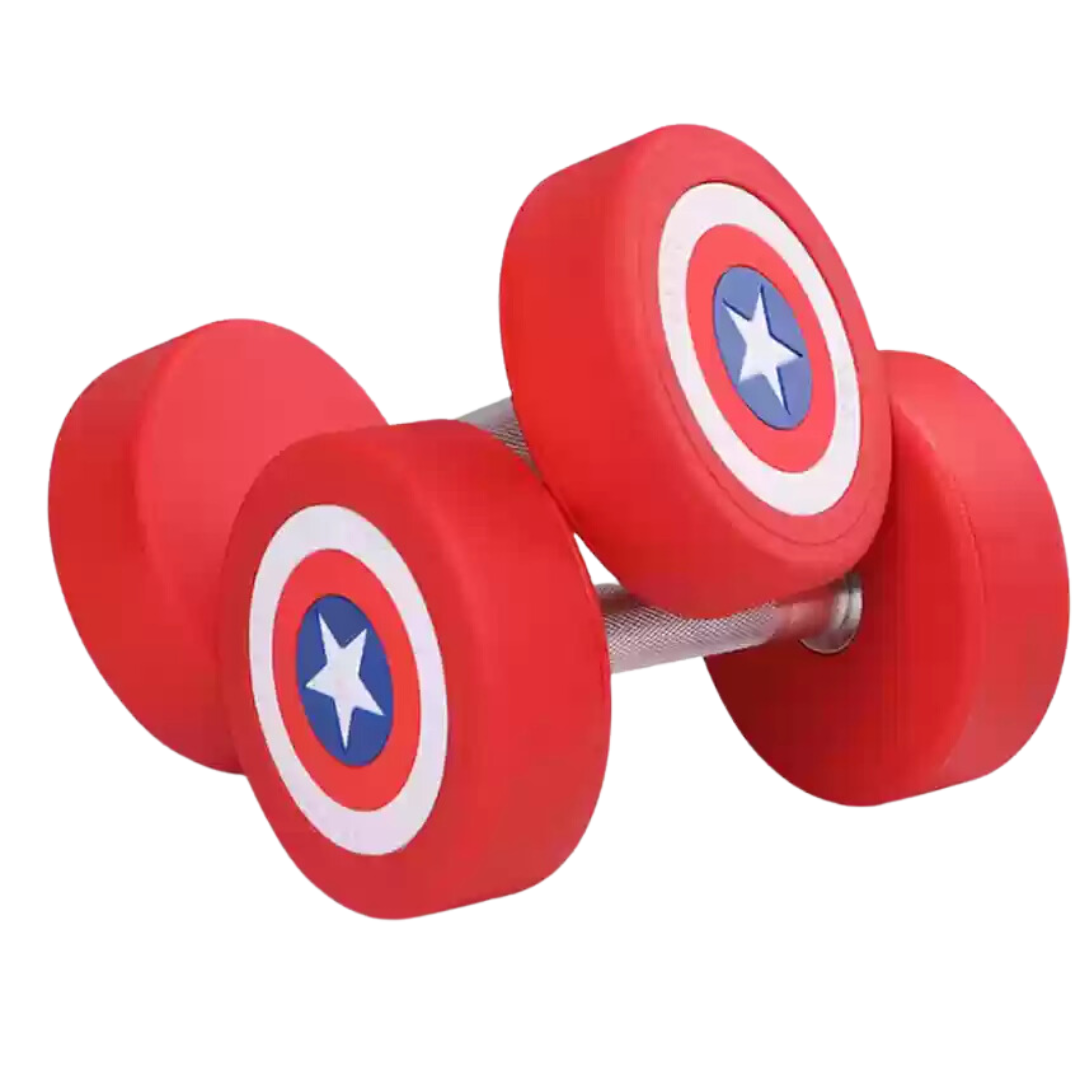 Entrena con estilo y potencia en cada repetición. Las mancuernas redondas Capitán América combinan diseño icónico con funcionalidad de alto rendimiento, pensadas para quienes buscan fortalecer su cuerpo con equipo duradero, cómodo y llamativo. Ya sea para rutinas de fuerza, resistencia o acondicionamiento, son ideales tanto para uso en casa como en gimnasios personales o comerciales.