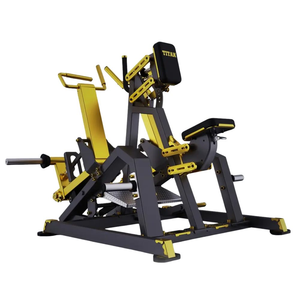 El Row TITAN está diseñado para activar de manera efectiva la espalda media y alta, trabajando el dorsal ancho, bíceps, deltoides posteriores y trapecios con una mecánica precisa y fluida. Sus manerales en doble posición permiten variar el tipo de agarre para enfocarse en diferentes áreas musculares, brindando versatilidad y control. Los brazos independientes facilitan un entrenamiento equilibrado y permiten trabajar de forma unilateral, mientras que el agarre central aporta estabilidad extra durante las repeticiones con un solo brazo. Con una estructura sólida y diseño ergonómico, el Row TITAN es una máquina esencial para cualquier gimnasio profesional.